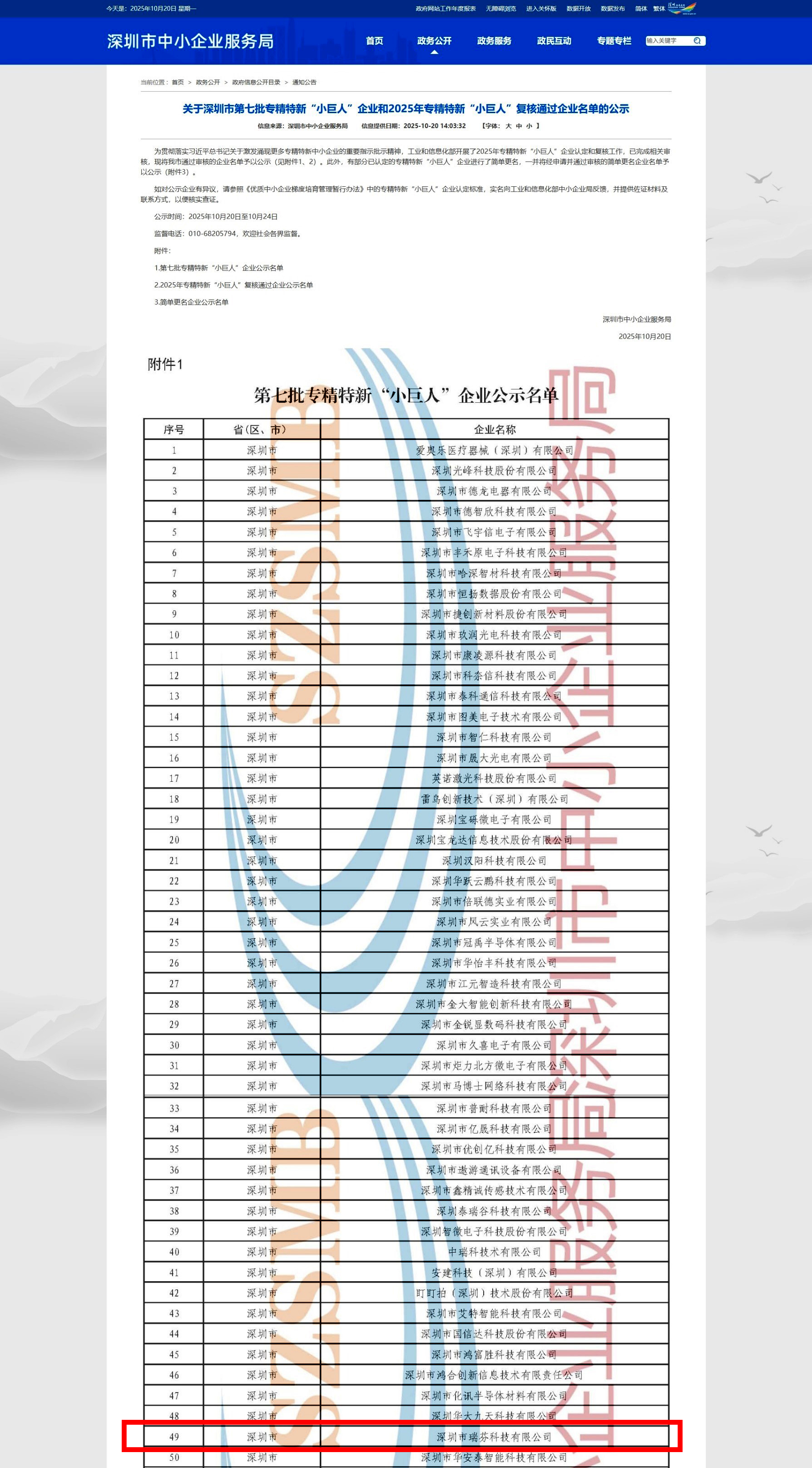 2025年10月20日工业和信息化部公示了第七批专精特新“小巨人”企业名单,深圳市瑞芬科技有限公司凭借其在惯性测量领域的专业技术和创新实力,成功荣获2025年国家级专精特新“小巨人”企业荣誉称号。