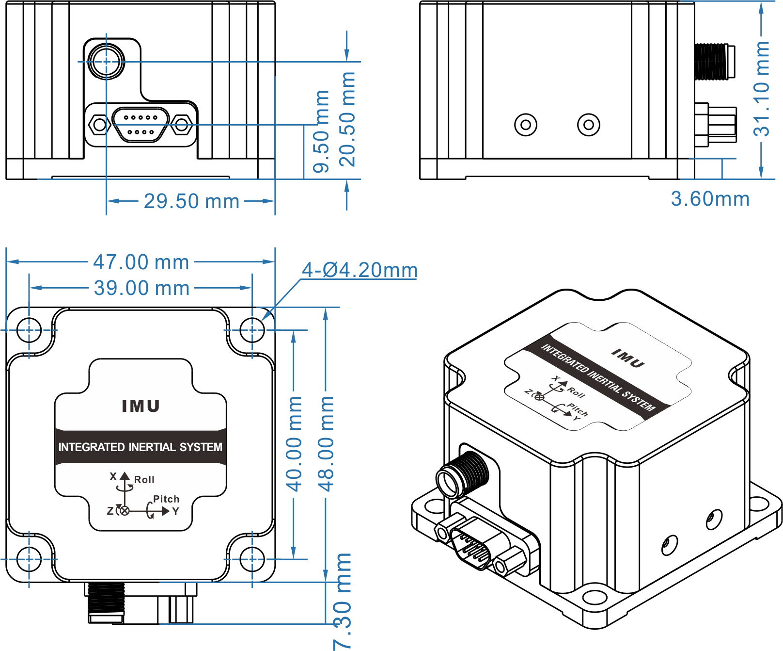 The IMU560 series is a GPS/INS integrated navigation system built by RION.the inertial measurement unit (IMU) is precision calibrated throughout the temperature range to meet performance requirements in different environments. The multi-data Kalman filter fusion algorithm is realized by a built-in navigation computer, and outputs real-time accurate carrier posture, heading information, three-dimensional position and velocity information, and various inertial device information. The appearance is exquisite, the structure is small, the installation is convenient, the use is flexible, and the operation is more stable and reliable.