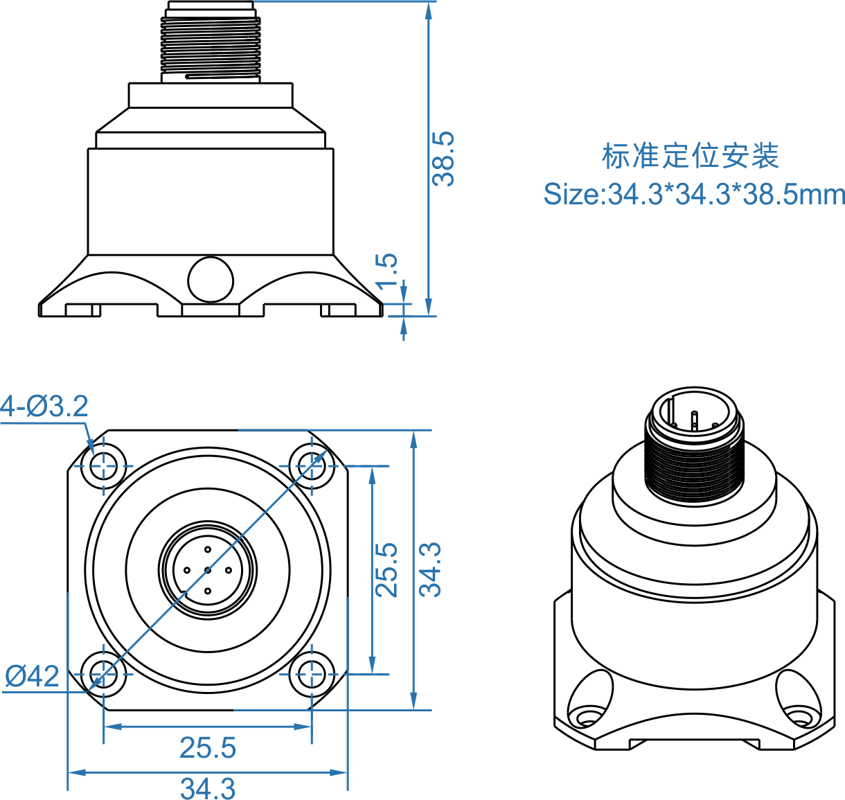 | Dimension | Product size: 34.3*34.3*38.5mm Magnetic adsorption base size: 34.23*34.23*8.1mm L-shaped adapter plate size: 36*44*15mm | ||||||